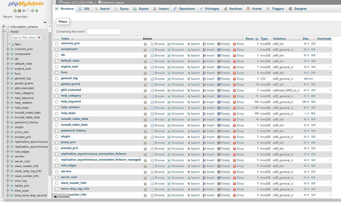 MySQL Community Server 8.2.0, Docker 24.0, phpMyAdmin 5.2 on Ubuntu 22.04